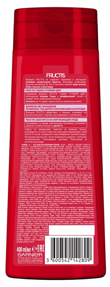 Сервис сравнения цен СкидкаГИД предлагает сравнить цены на товар «Шампунь Garnier Fructis Годжи Стойкий цвет для окрашенных или милированных волос 400 мл (C6035300)»