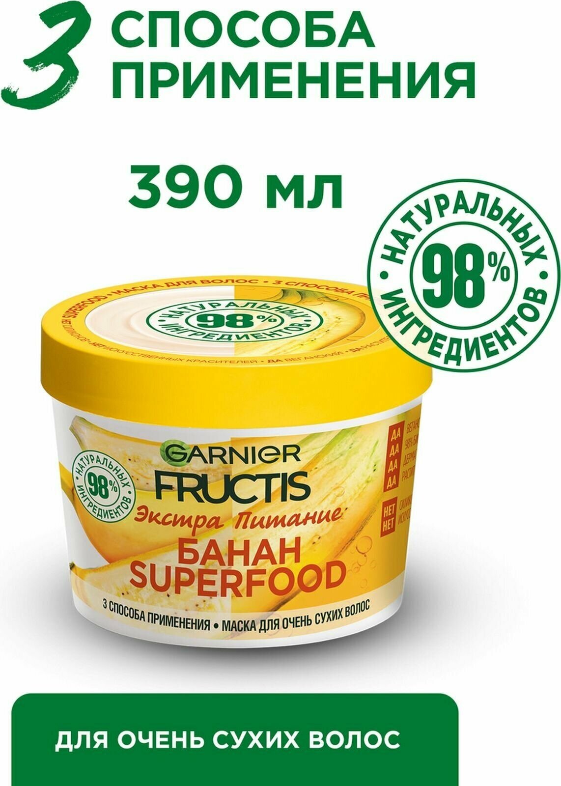 Маска для волос Garnier Fructis Super Food Банан Экстрапитание для очень сухих волос 390 мл (C6019800)
