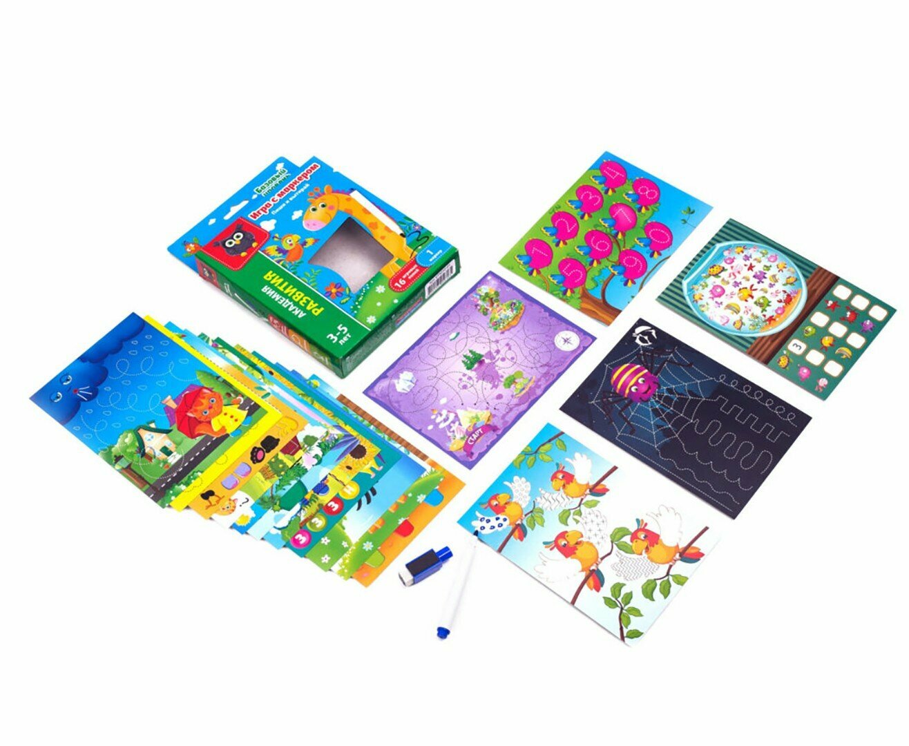 Замечательная игра представляет собой набор карточек с заданиями для малышей, которые предлагается выполнять с помощью маркера в комплекте. Дети увлекательно и с пользой проведут свой досуг, а если и совершат ошибку, то ее можно будет легко исправить, просто стерев маркер губкой.