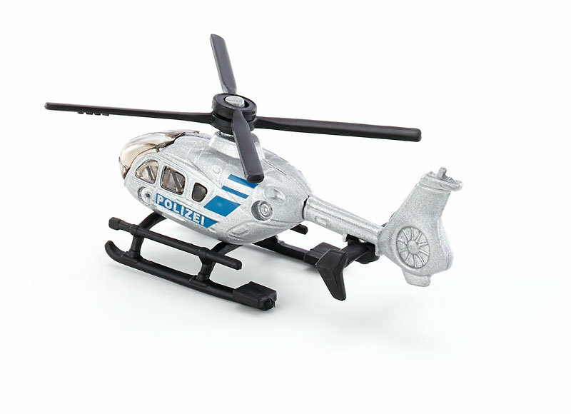 Siku Вертолет полицейскийИгрушечная модель полицейского вертолёта от немецкой компании Siku порадует коллекционеров игровых моделей транспорта.Вертолет выполнен в серебристо-синем цвете, как весь транспорт полиции в Европе. Корпус выполнен из металла, стёкла из прозрачного пластика, основной и хвостовой винты вращаются. полностью повторяет оригинал и удобен для сюжетно-ролевых игр детей. Детали тщательно проработаны.Немецкая компания Siku производит игрушки, соответствующие самым высоким требованиям к качеству и безопасности.