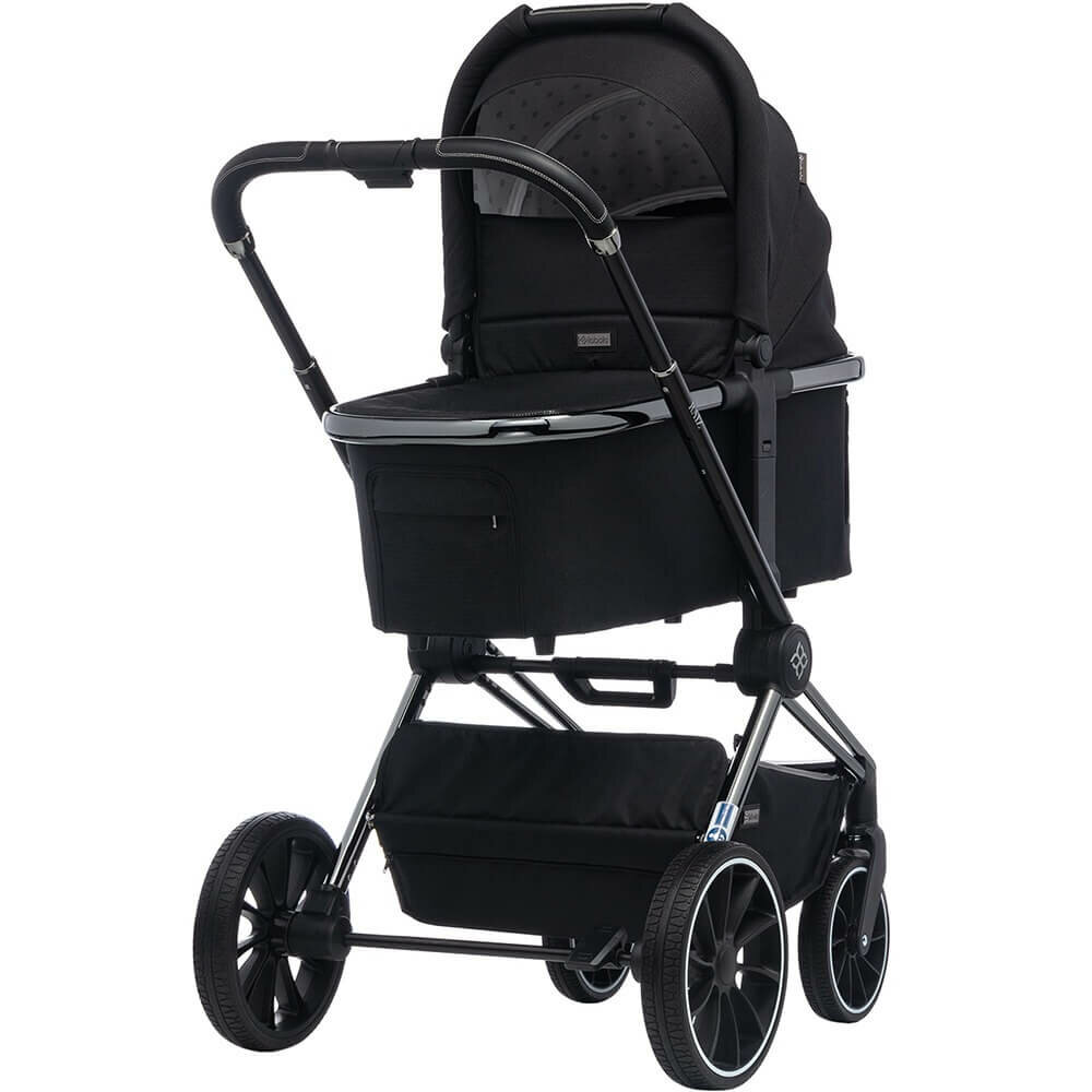 Коляска хоть и не дешевая, но очень удобная, от самого рождения до трех лет хватит. Это просто вездеход, мы с ней и в снег, и в дождь. Ткань тут отличная, водонепроницаемая, легко удаляются любые загрязнения. Легко трансформируется, колеса тут хорошие, кочки практически не ощутимы, еще есть отличная корзина, очень удобно ходить за покупками, вмещается килограммов 5 минимум.