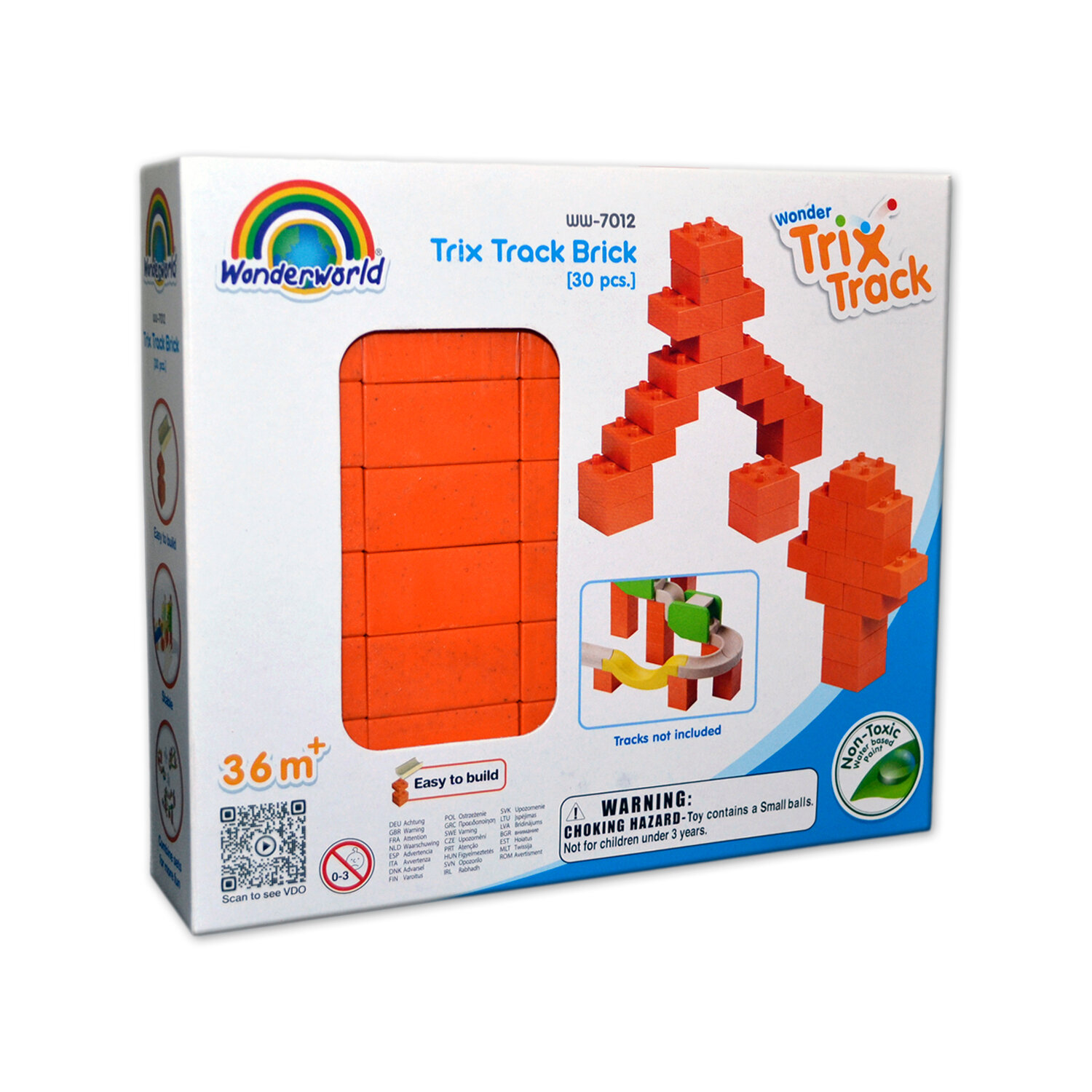 Trix Track Brick - дополнительный набор для сериии конструкторов Trix Track от Wonderworld. С их помощью можно сконструировать крутые виражи трека для шарика. Каждый блок открывает новые возможности и делает вас ближе к реализации вашей головокружительной идеи, возможно сегодня ваш ребенок собирает трек для шарика, а уже завтра спроэктирует новый захватывающий атракцион в известном Диснейленде. Прекрасное будущее - это счастливое и креативное детство сегодня.
