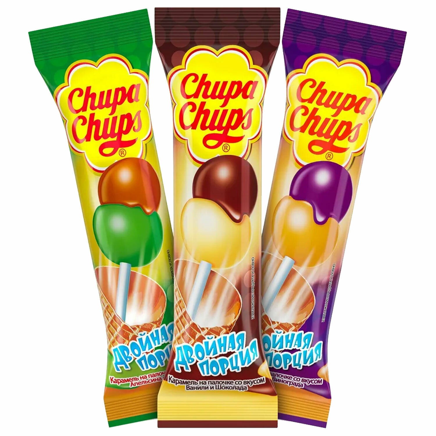 Чупа Чупс Двойная порция - два шарика карамели на одной палочке! Два вкуса на одной палочке.