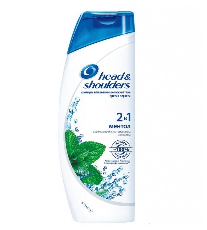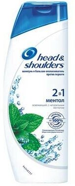 Шампунь и бальзам-ополаскиватель 2 в 1 против перхоти Head & Shoulders Ментол бережно ухаживает за волосами и кожей головы. Средство от перхоти эффективно очищает кожу головы и волосы, увлажняя их и придавая им ментоловую свежесть.