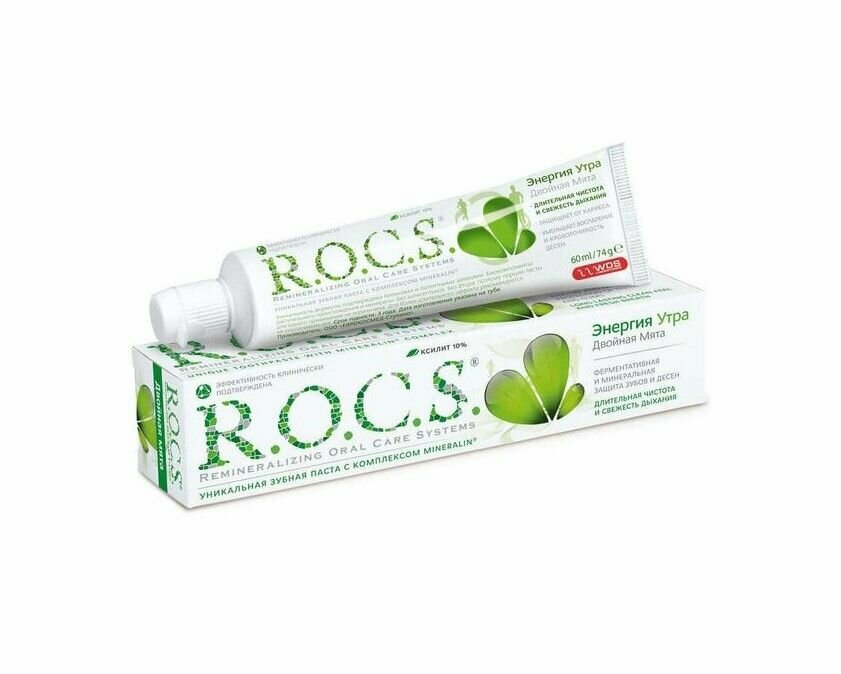 Описание товара:Уникальная зубная паста R.O.C.S. "Двойная мята" - комплексная защита зубов и десен.Значительное количество ингредиентов зубной пасты попадает в кровь через слизистую оболочку полости рта в момент чистки зубов. Вот почему так важно, чтобы паста была безопасной. Запатентованная формула R.O.C.S. содержи био-компоненты растительного происхождения, активность которых сохраняется благодаря применяемой низкотемпературной технологии приготовления зубной пасты.Состав товара:Aqua, Silica, Glycerin (Sorbitol), Xylitol, Sodium Lauryl Sulfate, Xanthan gum, Flavor, Calcium Glycerophosphate, Bromelain, Sodium Saccharine, Methylparaben, Titanium Dioxide, Propylparaben, Chloride Magnesium.Меры предосторожности:В случае попадания в глаза немедленно промыть водой.Способ применения:Тщательно чистите зубы дважды в день зубной пастой. Для чистки зубов рекомендуется использовать небольшое количество пасты размером с горошину.