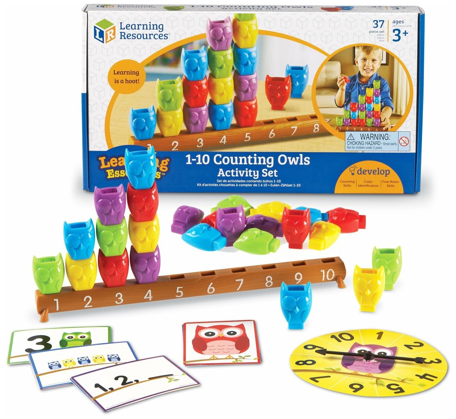 Learning Resources Игровой набор Веселые совята (37 элементов) Первостепенная цель данного набора - освоение счета от 1 до 10. Но эти цветные совята не только помогут малышу освоить навыки простого счета, а еще научат его верно соотносить цифры с реальным количеством предметов. Ребенок с удовольствием будет постигать азы арифметики с милыми совятами. Набор предлагает множество игр разного уровня сложности, которые подойдут как для знакомства с навыками счета, так и для их совершенствования. Счетные упражнения с забавными совятами в игровой форме научат счету от 1 до 10 и познакомят с простейшим математическим действиями: сложением и вычитанием. Также набор позволит закрепить навыки определения и различения цвета и формы Игровые карточки и волчок сделают занятия еще увлекательней и разнообразней В наборе: Пластиковая подставка, стилизованная под сук дерева с «гнездами» 25 фигурок совят в пяти разных цветах (зеленый, голубой, желтый, красный и фиолетовый); Волчок; 10 игровых карточек; Инструкция на русском языке в комплекте.