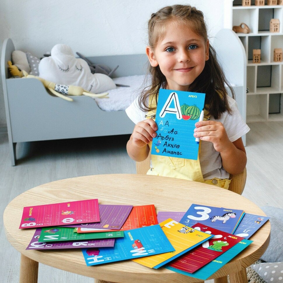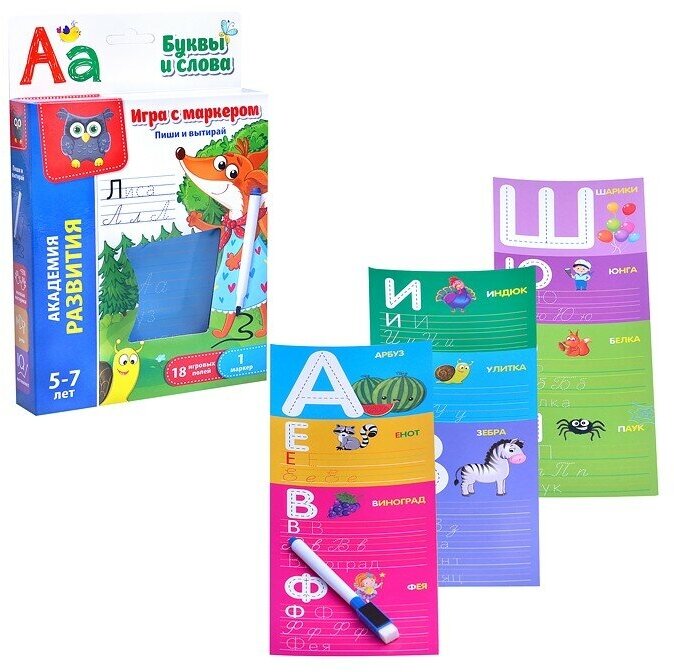 На красочных карточках собрались буквы и слова! Нужно лишь взять в руки маркер и «оживить» их!