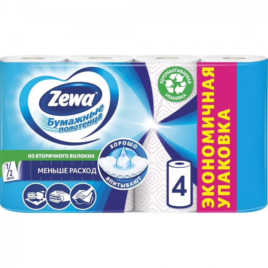Двухслойные кухонные полотенца Zewa Плюс 4 рулона двухслойные 4 рулона