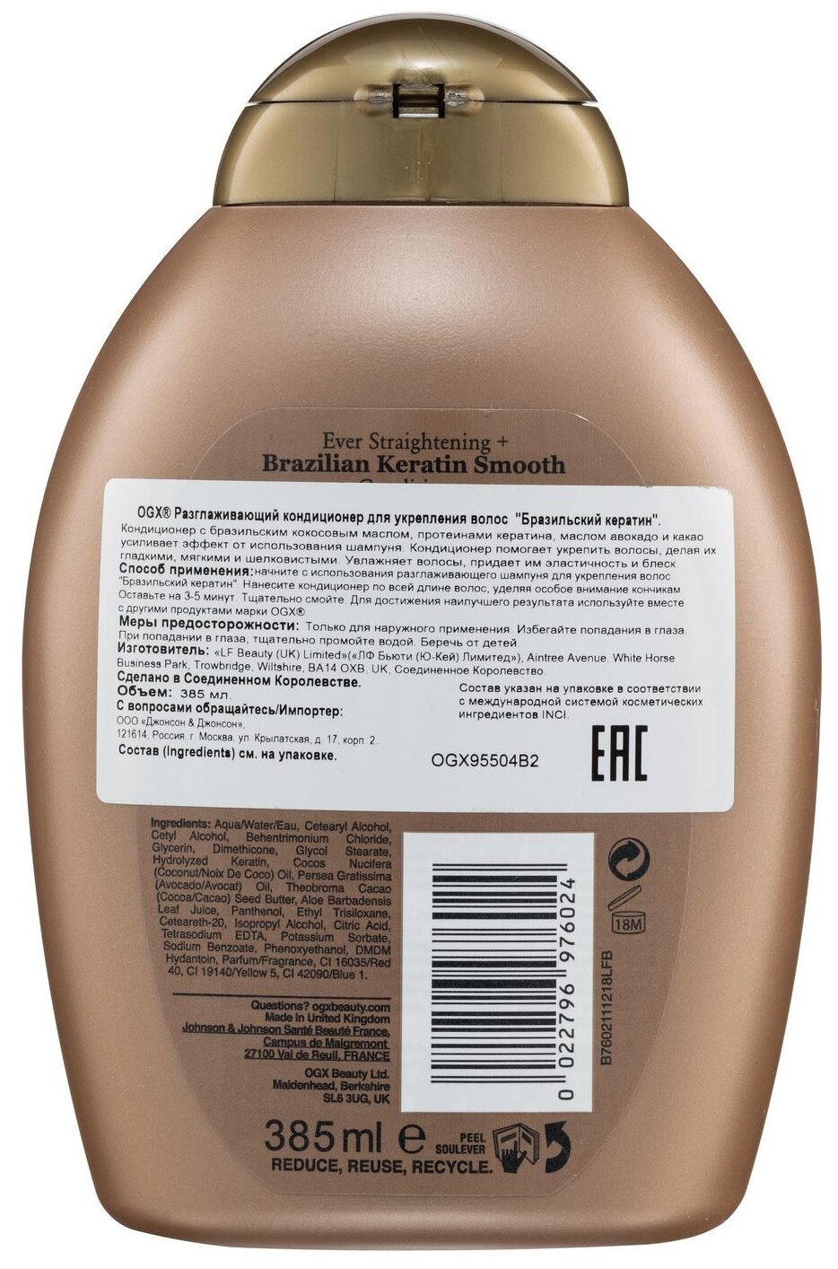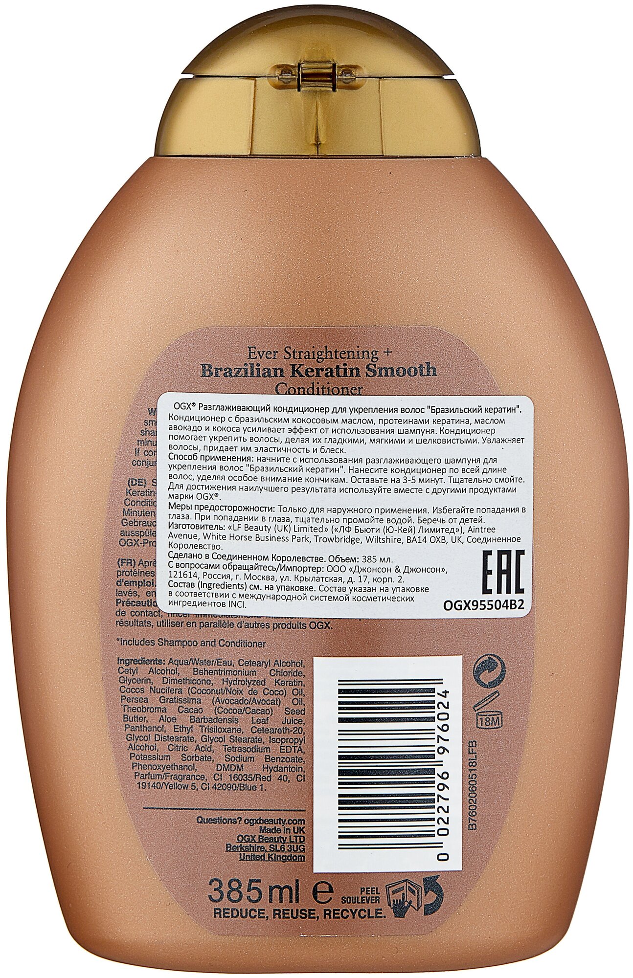 Сервис сравнения цен СкидкаГИД предлагает сравнить цены на товар «Разглаживающий кондиционер OGX Бразильский кератин для укрепления волос 385 мл»