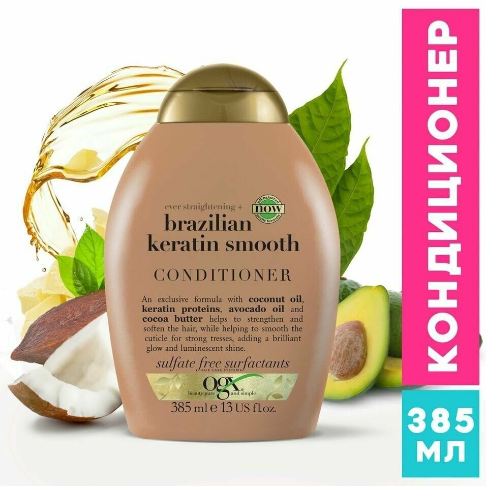 Разглаживающий кондиционер OGX Бразильский кератин для укрепления волос 385 мл