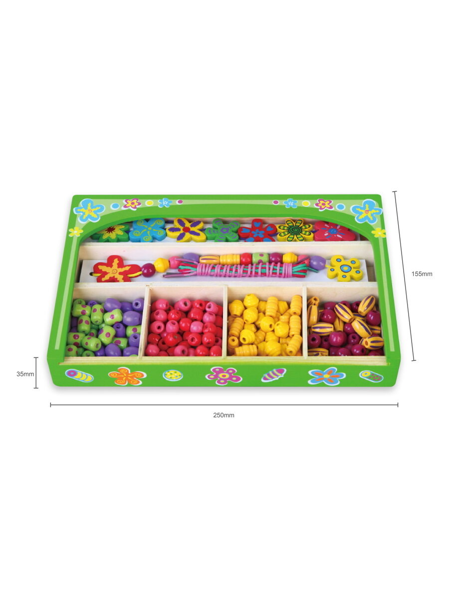 | Комплектация | 180 цветных бусинок, 8 цветочков и 5 шнурков |