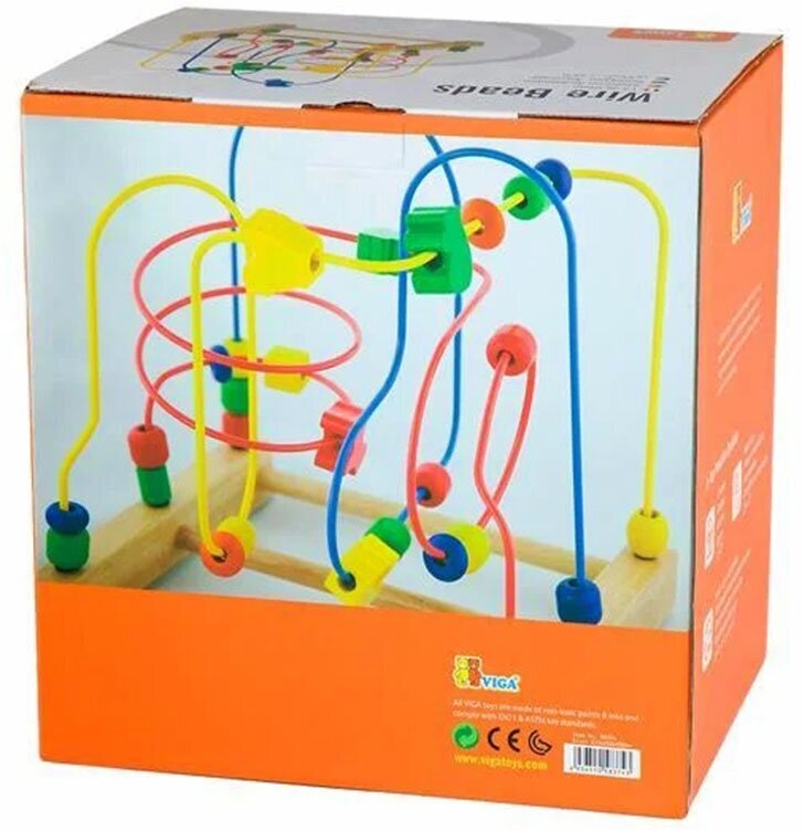 Может ли развивающая игрушка с множеством мелких деталей быть абсолютно безопасной- Да, если это игровой пальчиковый лабиринт от Viga Toys для детей от 18 месяцев.Он выполнен в виде устойчивой платформы из древесины, на которой закреплены несколько ярких, виртуозно изогнутых проволок. На них нанизаны деревянные бусины разных форм и цветов и фигурки животных. Дети любят их изучать, передвигать по проволочным изгибам.Такого рода занятия крайне полезны для мелкой моторики. На кончиках пальцев ребенка расположено множество нервных окончаний. Воздействие на них стимулирует умственное развитие.Занятия с проволочными лабиринтами рекомендуют слишком активным детям. Игра с бусинами из натурального материала благотворно влияет на нервную систему, успокаивает и гармонизирует эмоции ребенка.Пальчиковый лабиринт от Viga Toys предназначен для малышей преддошкольного возраста от полутора лет. Несмотря на мелкие детали, эта развивающая игрушка вполне безопасна. Она приносит родителям минимум хлопот, а детям - максимум пользы и удовольствия.