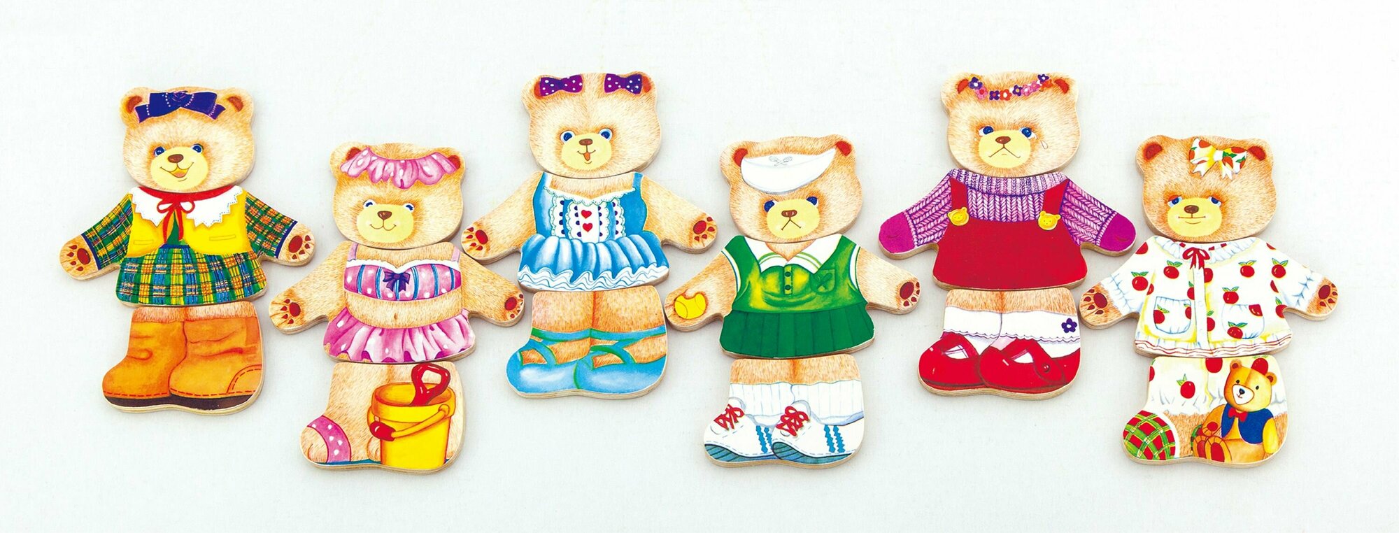 Игра "Одень мишку" - это отличная игра для развития у малыша мелкой моторики рук, логики и воображения. Игра состоит из деревянного сундучка-гардероба на крышке которого есть углубления в форме мишки, куша можно вставлять детали пазла. В сундучке имеются наряды на все случаи жизни, которые можно компоновать по сезону, стилю и цвету. Также мишка имеет 6 разных пазлов-мордочек с разными эмоции, по которым можно изучаться настроения. С помощь этого набора вы легко сможете придумать много дидактических игра для Вашего малыша, а ребенок получит массу удовольствия наряжая мишку!Размер: 13*14*4 см.
