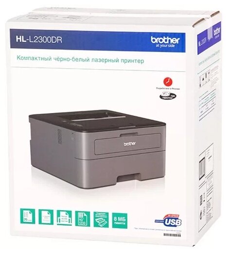 Компактный принтер BROTHER подходит для домашнего использования и малого офиса. Он оснащен модулем для двусторонней печати, работает на высоком разрешении 2400 600 dpi и обеспечивает до 26 распечаток формата A4 в минуту. При активации дуплексного режима скорость падает до 13 стр/мин. На разогрев к первой странице уходит не более 8 секунд. Расчетное количество рабочих циклов фотобарабана, установленного в модели, достигает 12 тысяч распечаток.