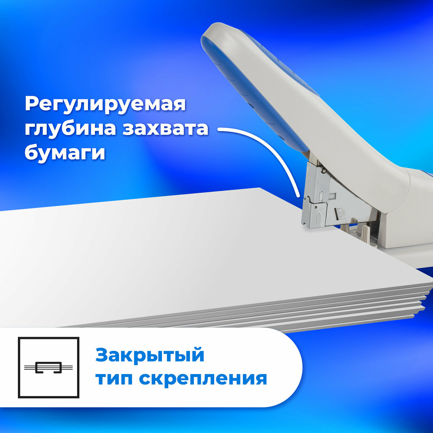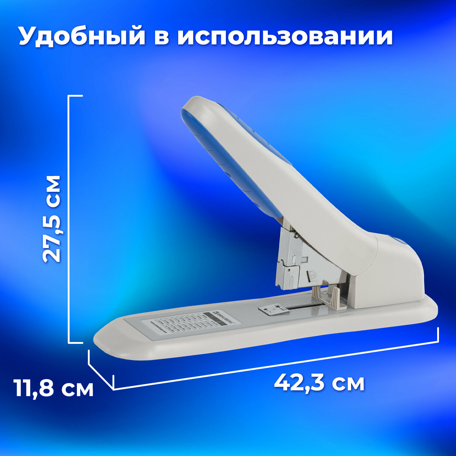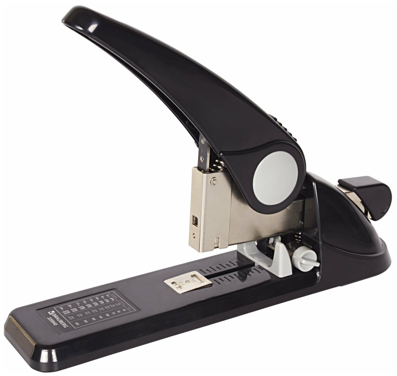 Надежный мощный степлер для скрепления документов большого объема до 200 листов. Кнопка фронтальной загрузки и резиновые эргономичные вставки делают работу со степлером более удобной