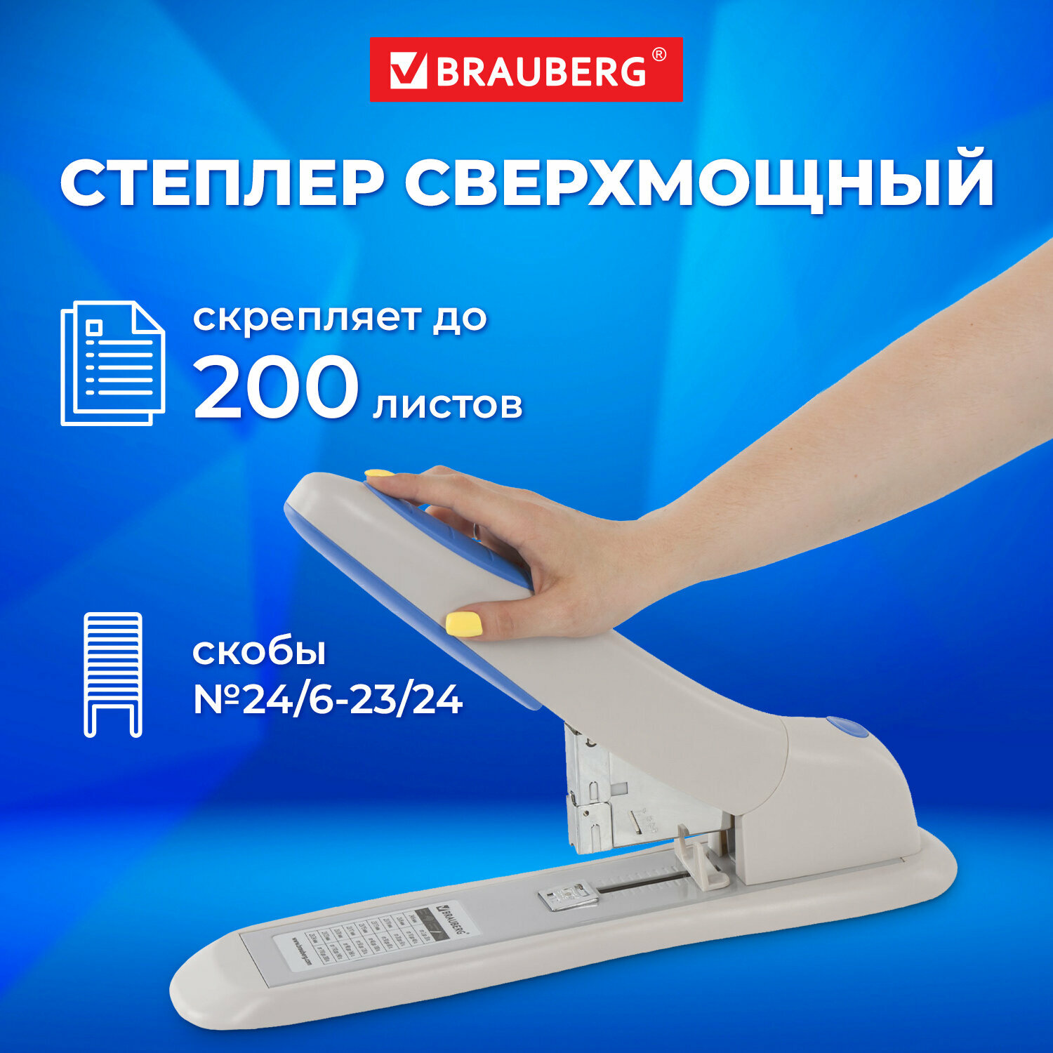 Степлер BRAUBERG Степлер мощный Horn №24/6-23/24
