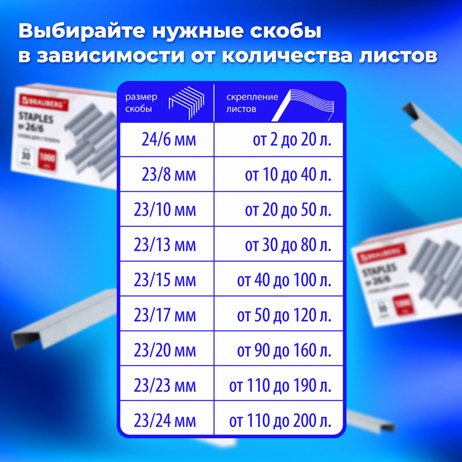 | Тип и размер скоб | 23/10, 23/13, 23/15, 23/17, 23/20, 23/23, 23/24, 23/8, 24/8, 24/6, 26/6 |