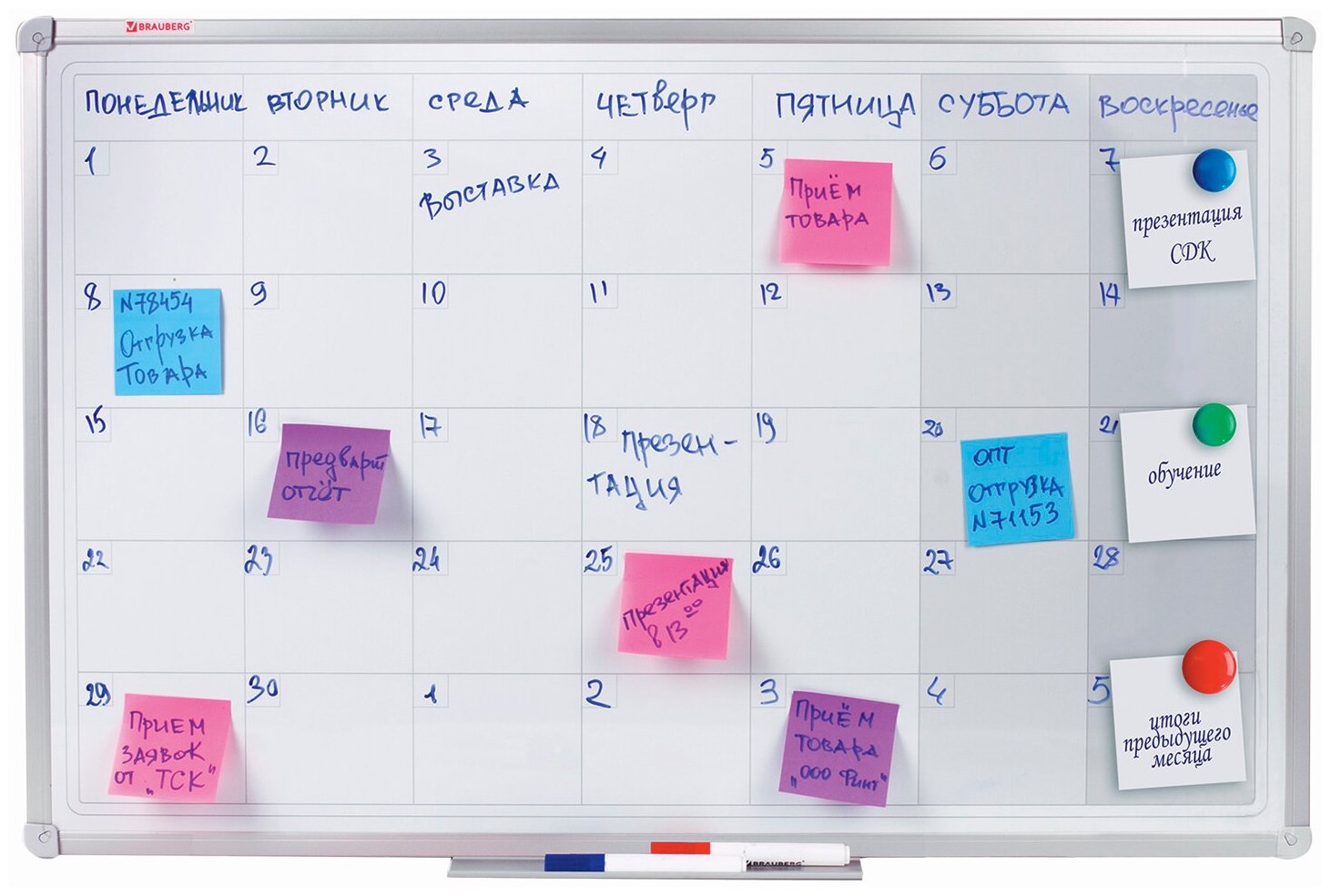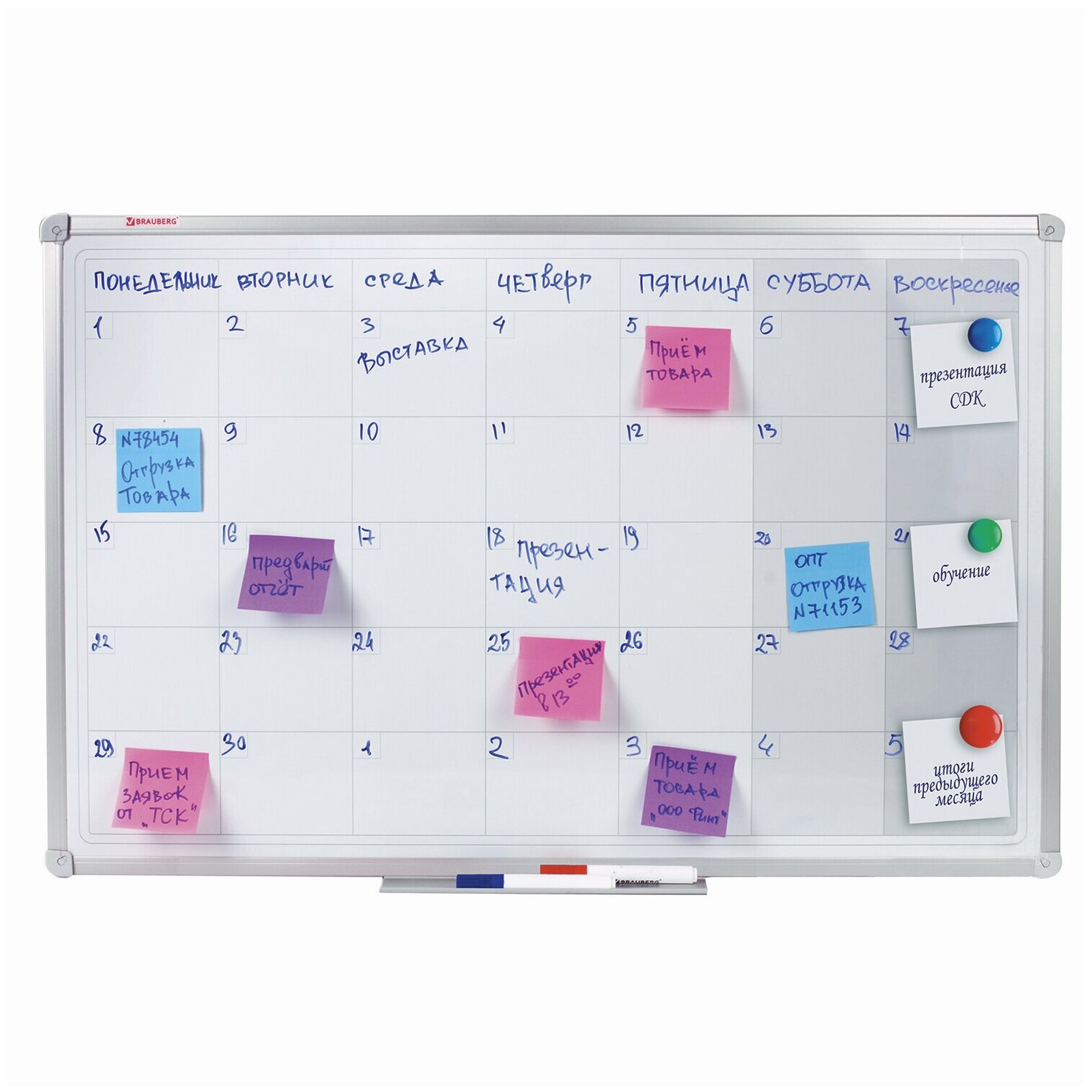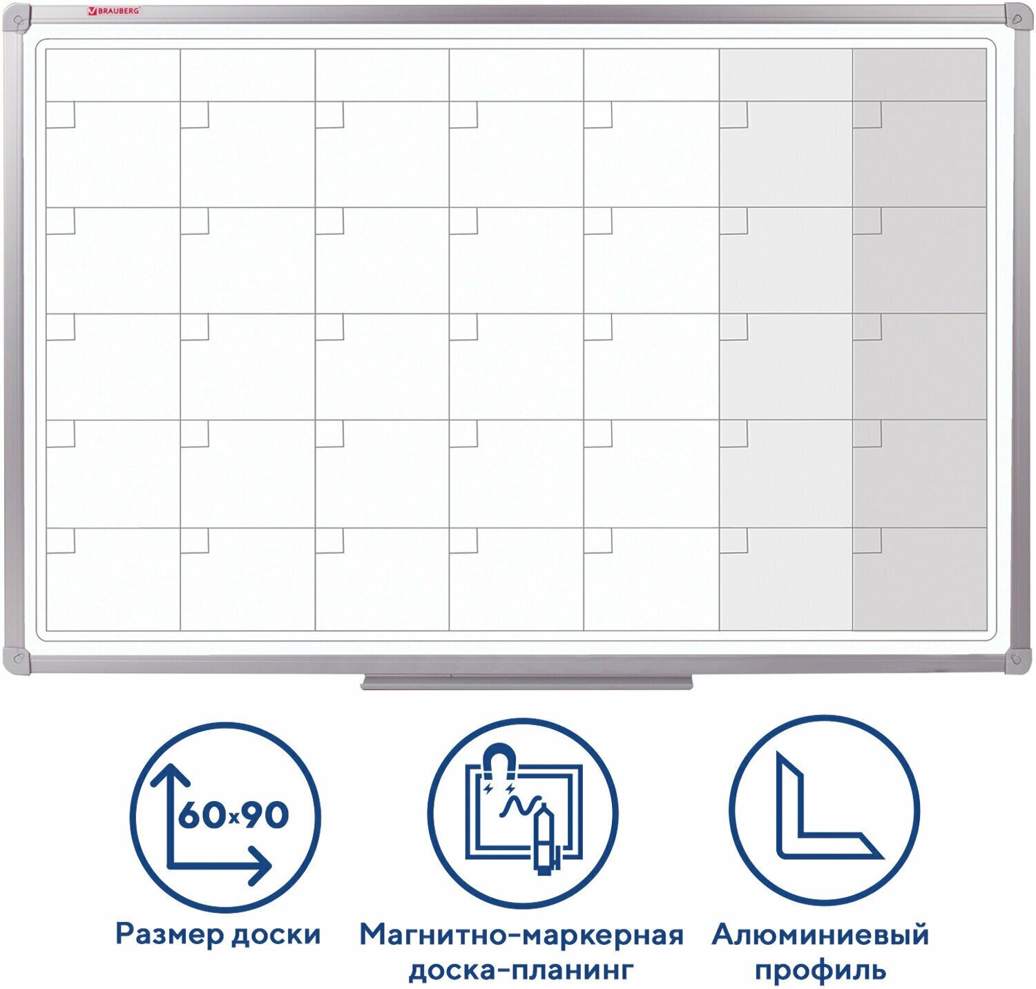 Демонстрационная доска Brauberg магнитно-маркерная 60x90см лак (белый)/алюминий (серый) планер (236863) Доска-планинг магнитно-маркерная 60х90 см