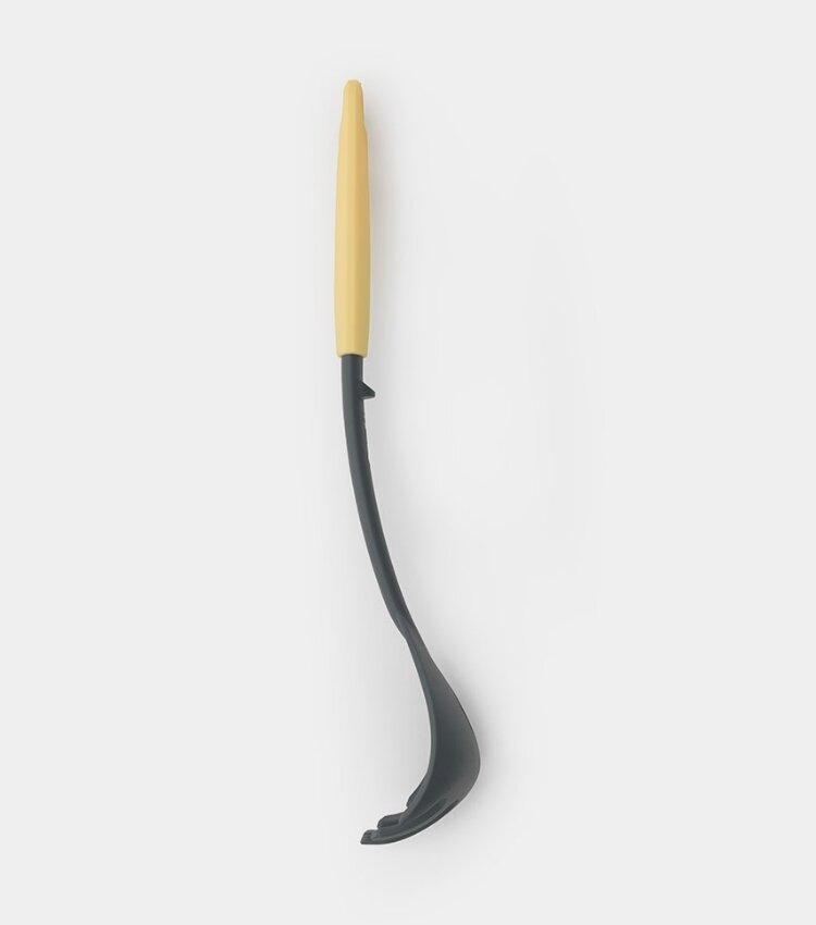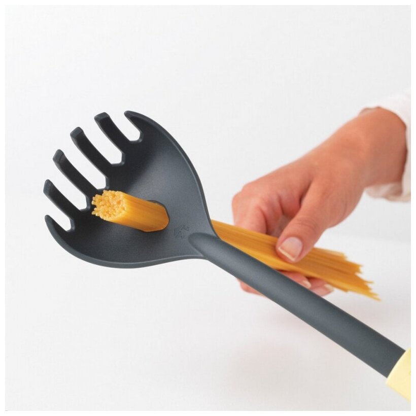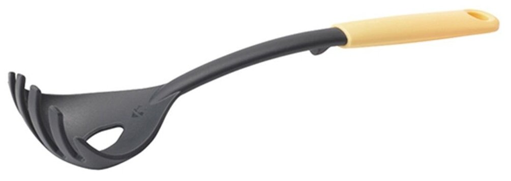 Ложка с длинной рукояткой и зубчатыми краями – позволяет отмерить и подать спагетти. Порция на одного человека - встроенный дозатор для спагетти. Длительный срок службы – сделана из огнеупорного нейлона (макс. 220 °C). Эластичный пластик и сглаженные формы – не царапает посуду с антипригарным покрытием. Удобна в хранении – петелька для подвешивания. Удобная очистка – можно мыть в посудомоечной машине.