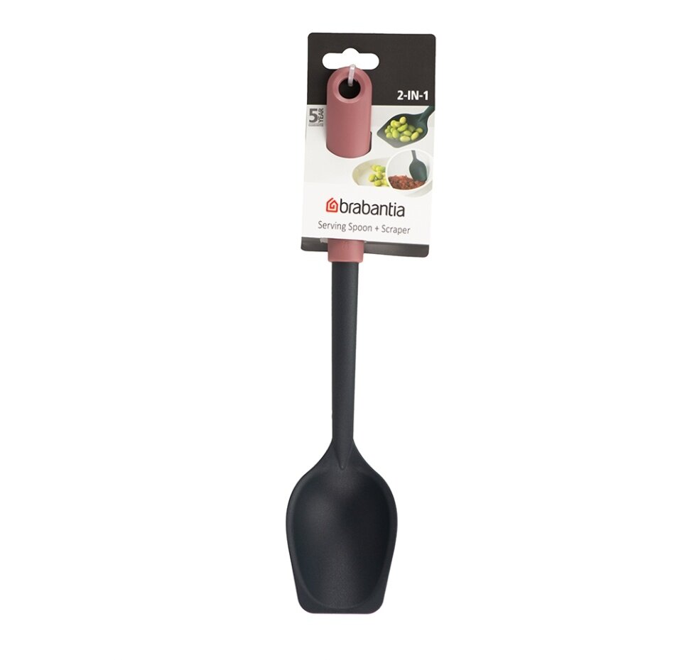 Brabantia Сервировочная ложка-лопатка - кухонная принадлежность для перемешивания, зачерпывания и соскребания. Особенности: Идеальная форма, позволяющая собрать всё со дна и стенок кастрюли Длительный срок службы - сделана из огнеупорного нейлона (макс. 220 °C) Эластичный пластик и сглаженные формы - не царапает посуду с антипригарным покрытием Удобная очистка - можно мыть в посудомоечной машине.