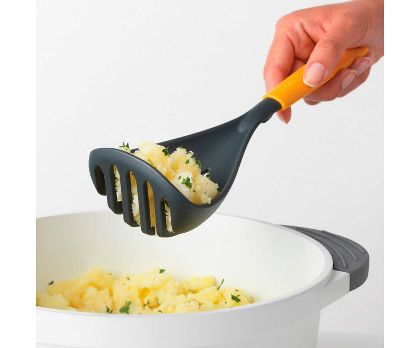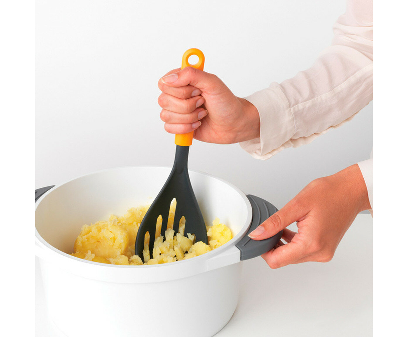 2 в 1: для приготовления картофельного пюре и его сервировки. Идеальная форма, чтобы размять картофель.