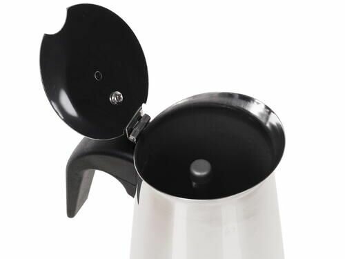 Гейзерная кофеварка IRIT 0.3 л IRH-454 готовит вкусный, ароматный напиток с помощью пара. Устройство представляет собой сборный сосуд, состоящий из двух частей. В нижней части прибора кипит вода, а в фильтре между ними находится молотый кофе. Порошок под действием пара, поступающего снизу через специальный внутренний носик в фильтре (деталь, разделяющая верх и низ) заваривается, превращаясь в крепкий напиток. Верхний сосуд одновременно является емкостью для готового кофе. На нижней части прибора есть защитный клапан, через который может сбрасываться избыточное давление.