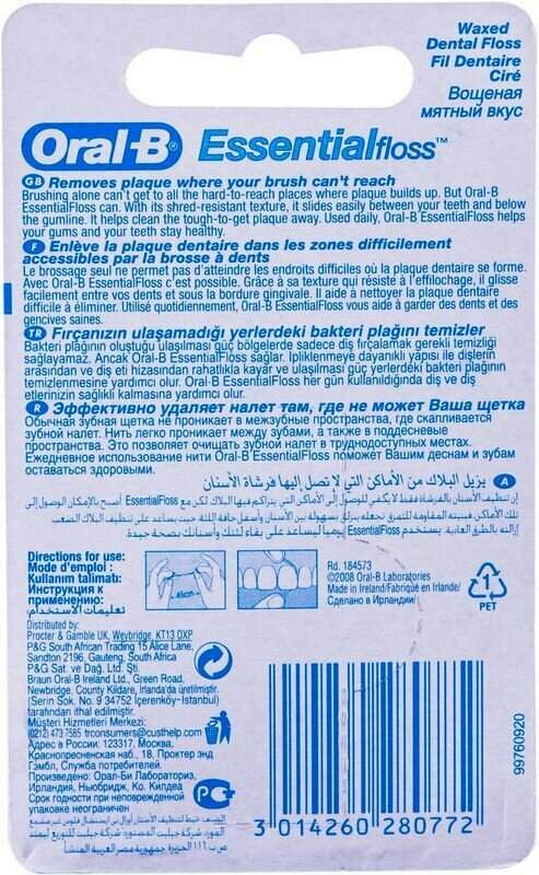 | Полное наименование | Зубная нить ORAL_B Essential floss мятная, 50 м |