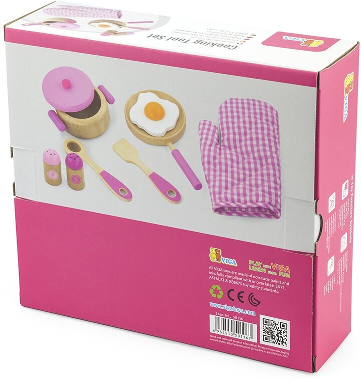 Набор для маленького повара отлично подойдет детям. Которые желают научиться готовить. Комплект обладает приятным и точным дизайном, благодаря чему ребенок сможет понять основные блюда кухни. В комплект идет сковорода, на которой размещено яйцо. Имеется кухонная лопатка, при помощи которой можно переворачивать пищу. Есть ложка и специи. Благодаря набору ребенок сможет создавать более богаты сюжет ролевых игр, что способствует развитию воображения и фантазии.