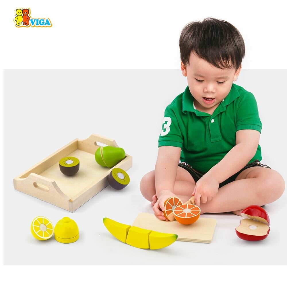 - Набор Режем фрукты с подносом из дерева VIGA 58806