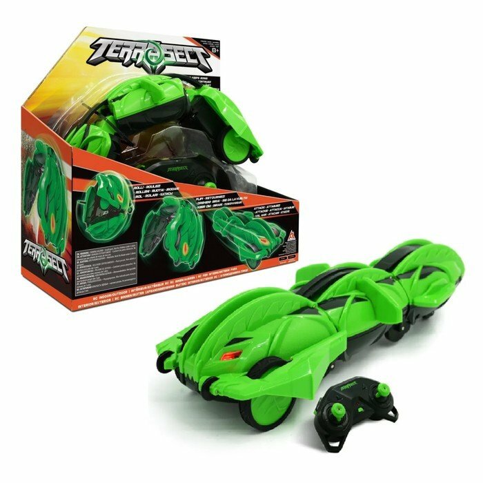 Terrasect Force Атакующий трансформер имеет специальную навигацию Terra-Sect Force, благодаря которой он может двигаться по любым поверхностям и легко преодолевать препятствия в виде ям и ступенек. Этот дрон имеет несколько режимов и может катиться, ползти и атаковать свою цель в любом направлении. Трансформируется из гусеницы в колесо и наоборот. Контроллер мощностью 2,4 ГГц работает от 3-х батареек типа ААА, которые не входят в комплект. Для дрона также требуются 4 батарейки типа АА (не входят в комплект). Глаза дрона светятся. Изготовлен из высококачественного ударопрочного ABS пластика Такая игрушка способствует развитию сообразительности и умению играть, а также дарит незабываемые эмоции. Предназначена для детей от 8-ми лет.