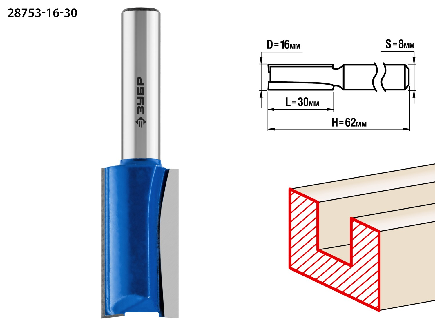 Пазовая прямая фреза ЗУБР 28755-12-51
