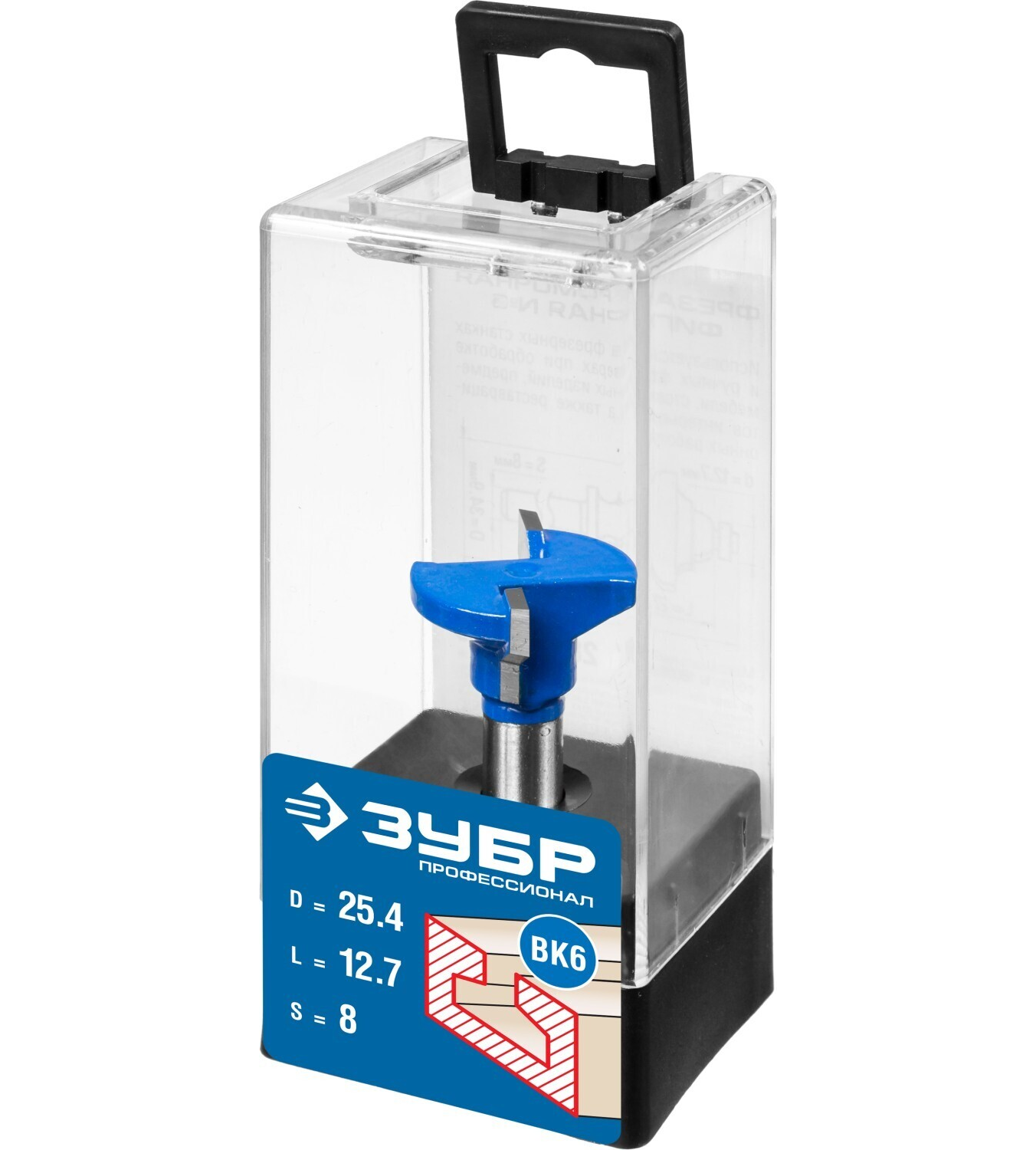 Фреза пазовая Т-образная №2, D= 25,4мм, высота-12,7мм, вугол наклона-30 градусов, хв.-8 мм, ЗУБР Профессионал