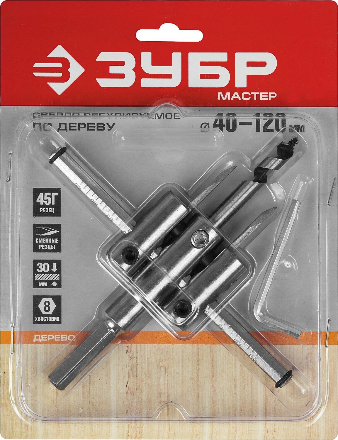 Сверло ЗУБР "МАСТЕР" регулируемое по дереву, двухрезцовое "Балеринка", d=40-120мм, 1-30мм, в блистере