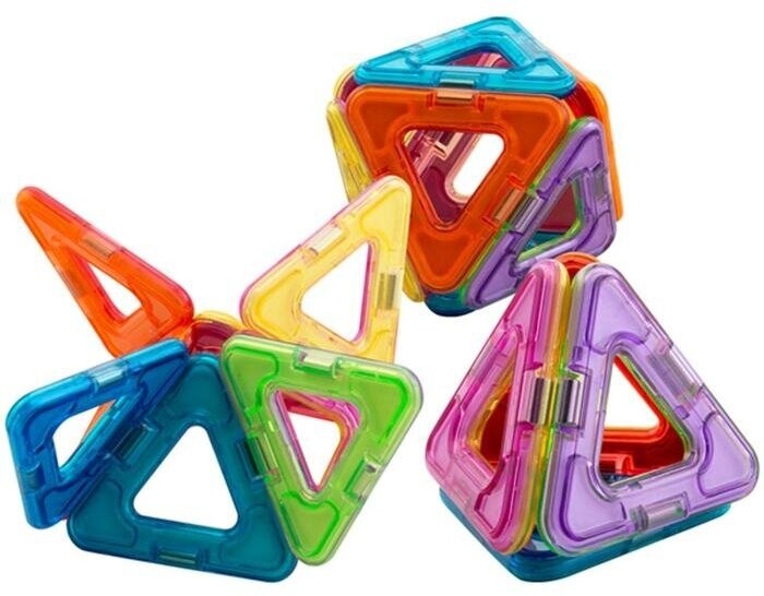 Магнитой Конструктор магнитный 8 треугольников Магнитой — это серия магнитных конструкторов, которые состоят из необычных разноцветных пластиковых деталей в виде различных плоских геометрических фигур и позволяют собирать объемные конструкции. Игровой набор состоит из 8 треугольных деталей, две из которых с окошком. С помощью деталей юный архитектор сможет соорудить самые разные оригинальные 3D фигуры. Каждая деталь конструктора присоединяется к другой с помощью магнита, расположенного внутри. Игровой процесс увлечет ребенка и будет способствовать развитию логики, мышления, фантазии, воображения и мелкой моторики рук. Количество деталей: 8