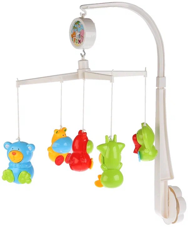 Эта музыкальная подвеска с игрушками станет любимой забавой малюток с рождения. Она изготовлена из качественной яркой пластмассы в виде подвески, которую можно закрепить над кроваткой, люлькой или коляской, состоит из центрального элемента и объёмных фигурок животных наполненных мелкими шариками. Крепятся элементы к центральной части при помощи пластмассовых дуг и верёвочек, при движениях издают нежный мелодичный звук. Детали игрушки окрашены в контрастные привлекательные цвета, сдержанных тонов. Погремушки помогают развивать у малышей мелкую моторику рук, хватательные рефлексы, цветовое восприятие, слух, внимание, тактильное восприятие и навыки удерживания предмета в поле зрения. Качество игрушки подтверждено сертификатом соответствия. Рекомендовано для детей с 6 месяцев.