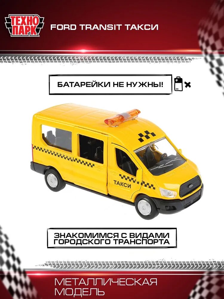 На сегодняшний день товар «Технопарк Машина "Ford Transit такси" 12см Машина металлическая Ford transit Такси 12 см» можно купить с кешбеком в 1 магазине: Яндекс.Маркет