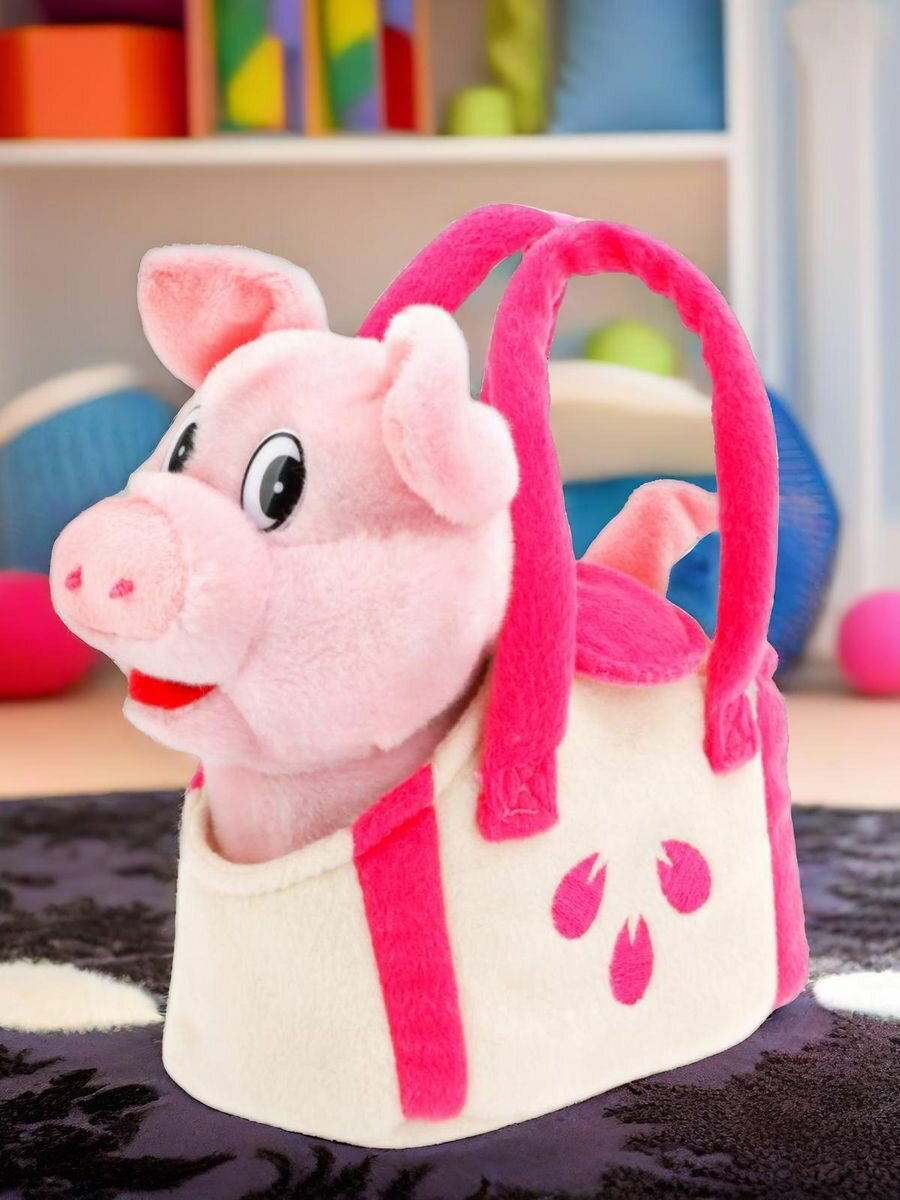 Свинка и сумочка сделаны из мягкого, приятного на ощупь материала. Её очень приятно обнимать и гладить. Яркий дизайн аксессуаров придётся по вкусу маленьким модницам. Поросёнка можно сажать в сумочку, брать с собой на прогулку или в гости.