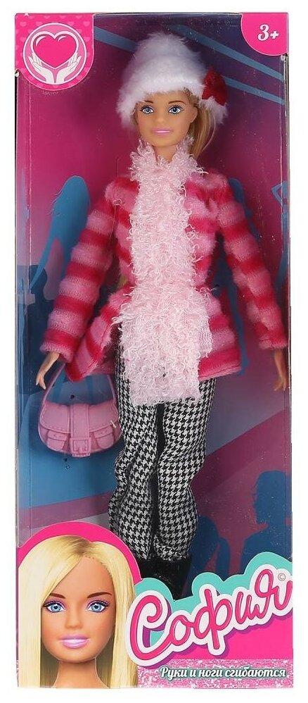 Кукла «София» ТМ «Карапуз» в модной одежде:- хорошо прорисованное лицо- руки и ноги сгибаются (на шарнирах)- сумочка в комплектеОбразы Софии всегда соответствуют последним модным тенденциям. На кукле стильное розовое пальто в полоску и клетчатые брюки. Её образ дополняет шарф под цвет пальто и белая шапочка. Софии можно сделать много красивых причёсок. Её роскошные длинные волосы легко расчёсывать и заплетать.Такая кукла ТМ «Карапуз» — мечта каждой девочки. С ней можно играть в различные сюжетно-ролевые игры, которые помогают детям освоить новые социальные роли и развить воображение. Рост куклы 29 см.Рекомендовано детям от 3 лет.