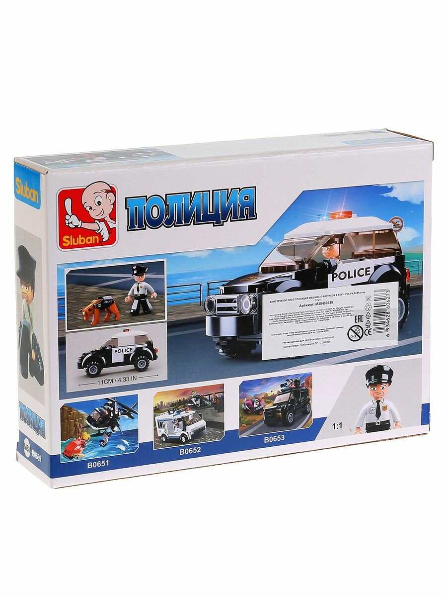На сегодняшний день товар «Sluban Sluban Конструктор пластиковый "Полицейская машина" с фигуркой 78дет. (M38-B0639)» можно купить с кешбеком в 1 магазине: Яндекс.Маркет