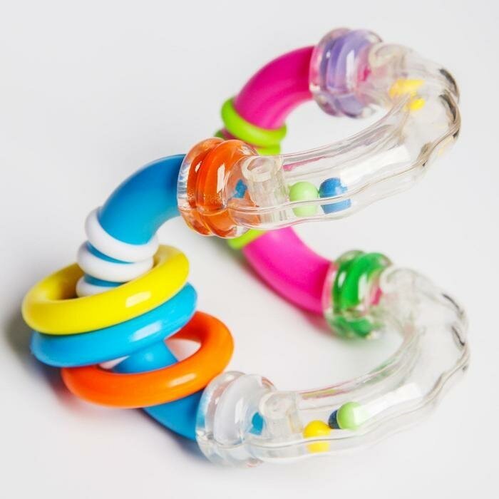 Погремушка-прорезыватель Восьмёрка из серии Расти малыш очень необходима ребенку во время появления зубов. Ведь чесать десны - одно из частых занятий малыша. Но чтобы ребенок не тянул в рот все, что попадется ему в руки, создан яркий и очень удобный прорезыватель в виде цифры восемь с разноцветными подвесками на ней.