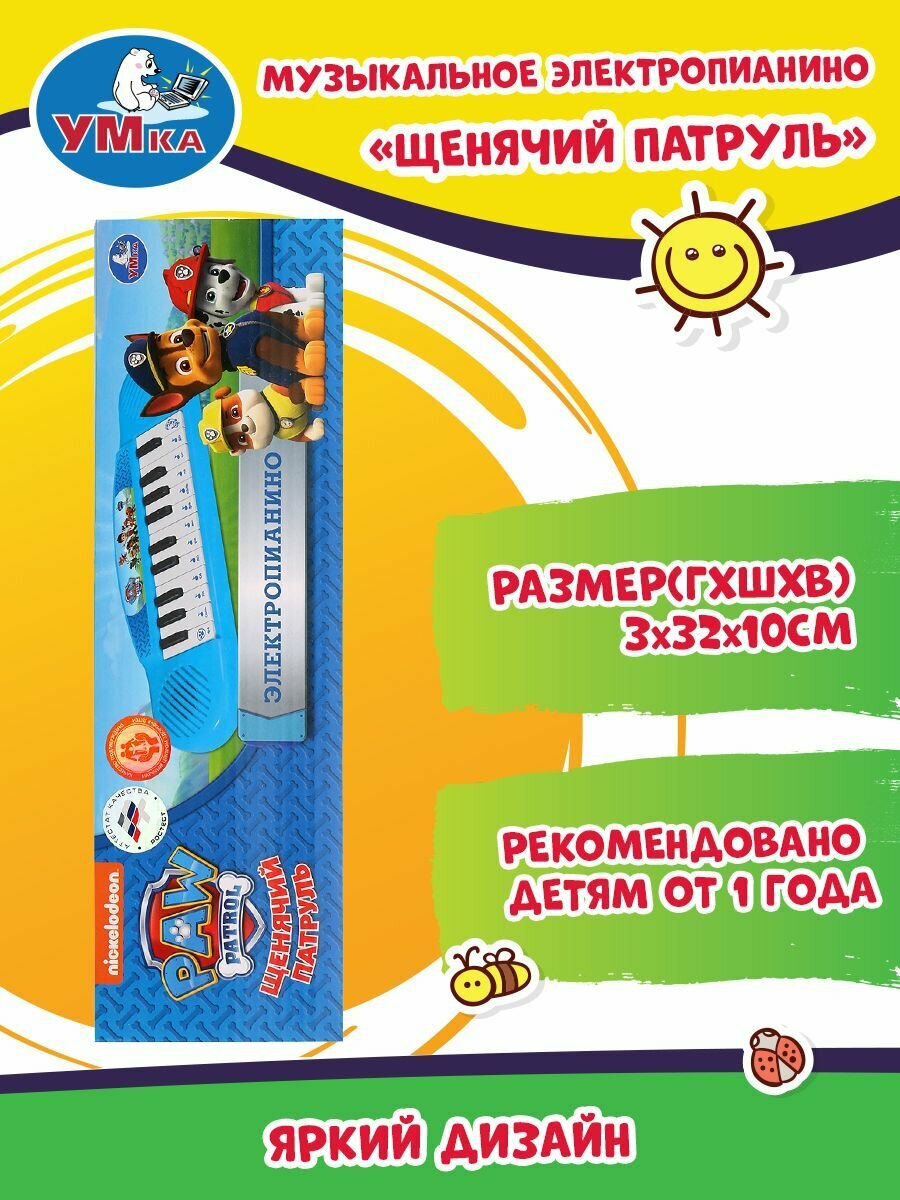 На сегодняшний день товар «Электропианино Умка песня из м/ф Щенячий патруль и музыкальных инструментов 3x32x10 (B1371790-R17)» можно купить с кешбеком в 1 магазине: Яндекс.Маркет