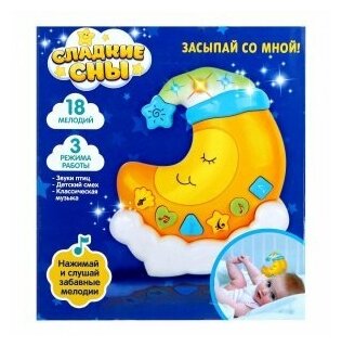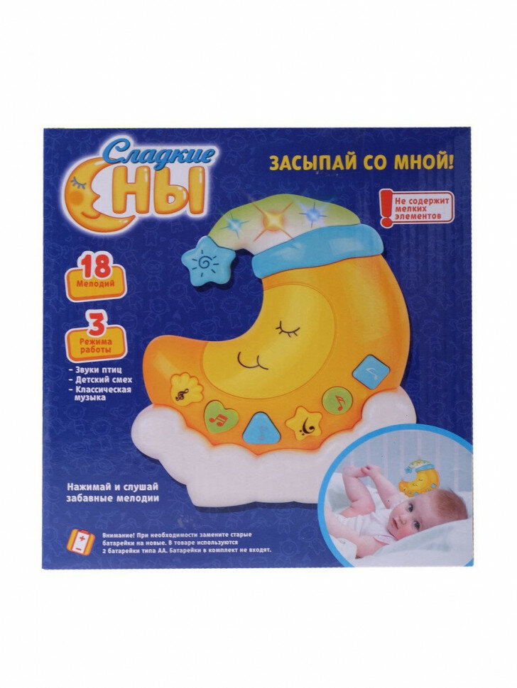 Музыкальный ночник Сладкие сны работает в 3-х режимах: воспроизведение звуков птиц, детского смеха и классической музыки. Нажимая на кнопочки, ребёнок послушает 18 приятных мелодий. Воспроизведение музыки и звуков будет сопровождаться красивыми световыми эффектами.