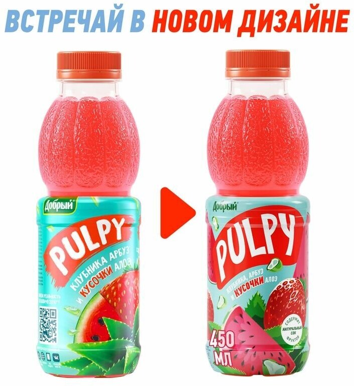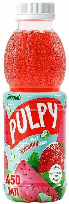 Напиток сокосодержащий Добрый Pulpy Клубника Арбуз и кусочки алоэ 450мл