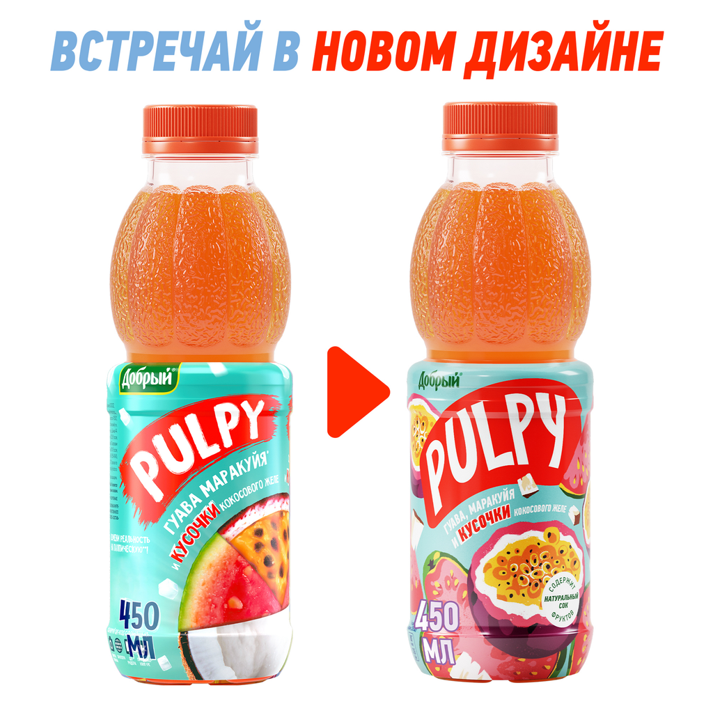 Напиток сокосодержащий Добрый Pulpy Маракуйя-гуава с кусочками кокосового желе 450мл