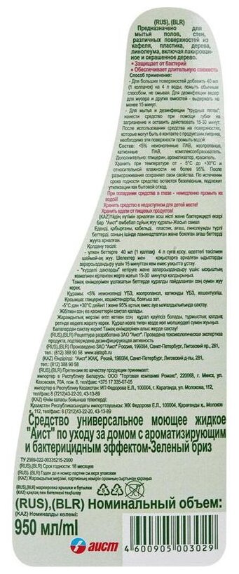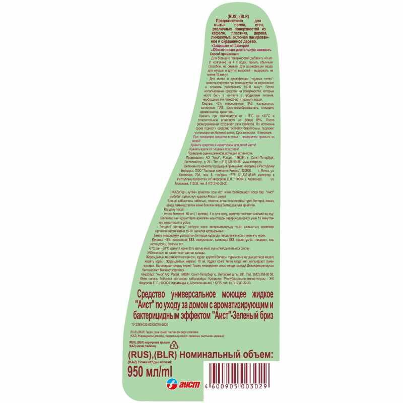 Средство для мытья полов Аист Зеленый Бриз 950мл