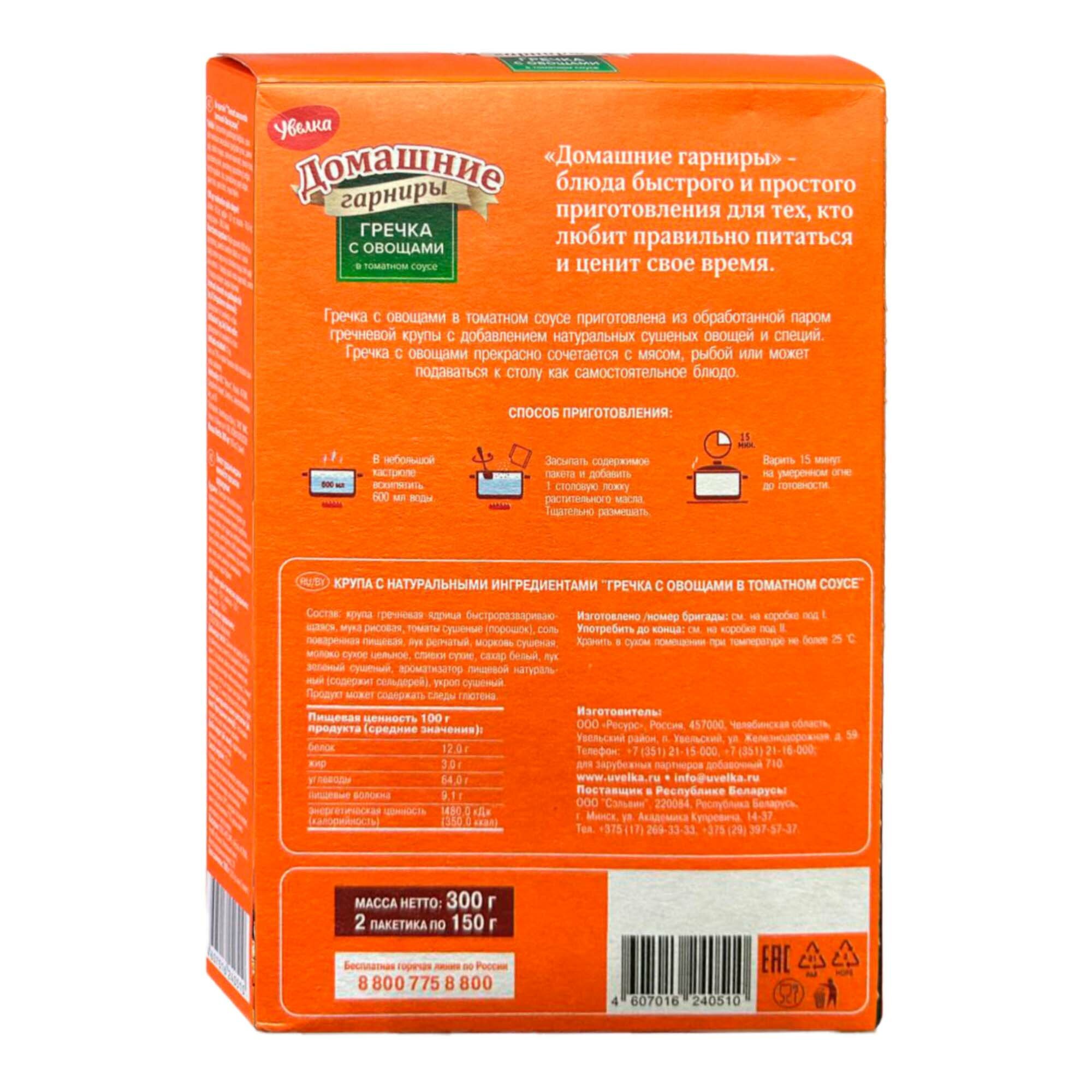 Крупа Увелка Гречневая с овощами в томатном соусе 2пак*150г