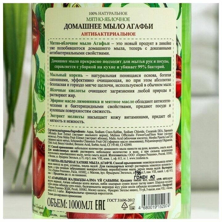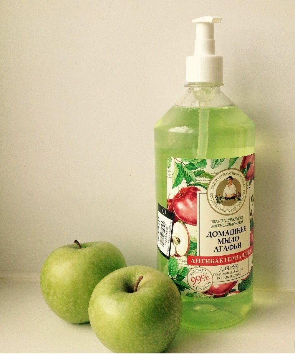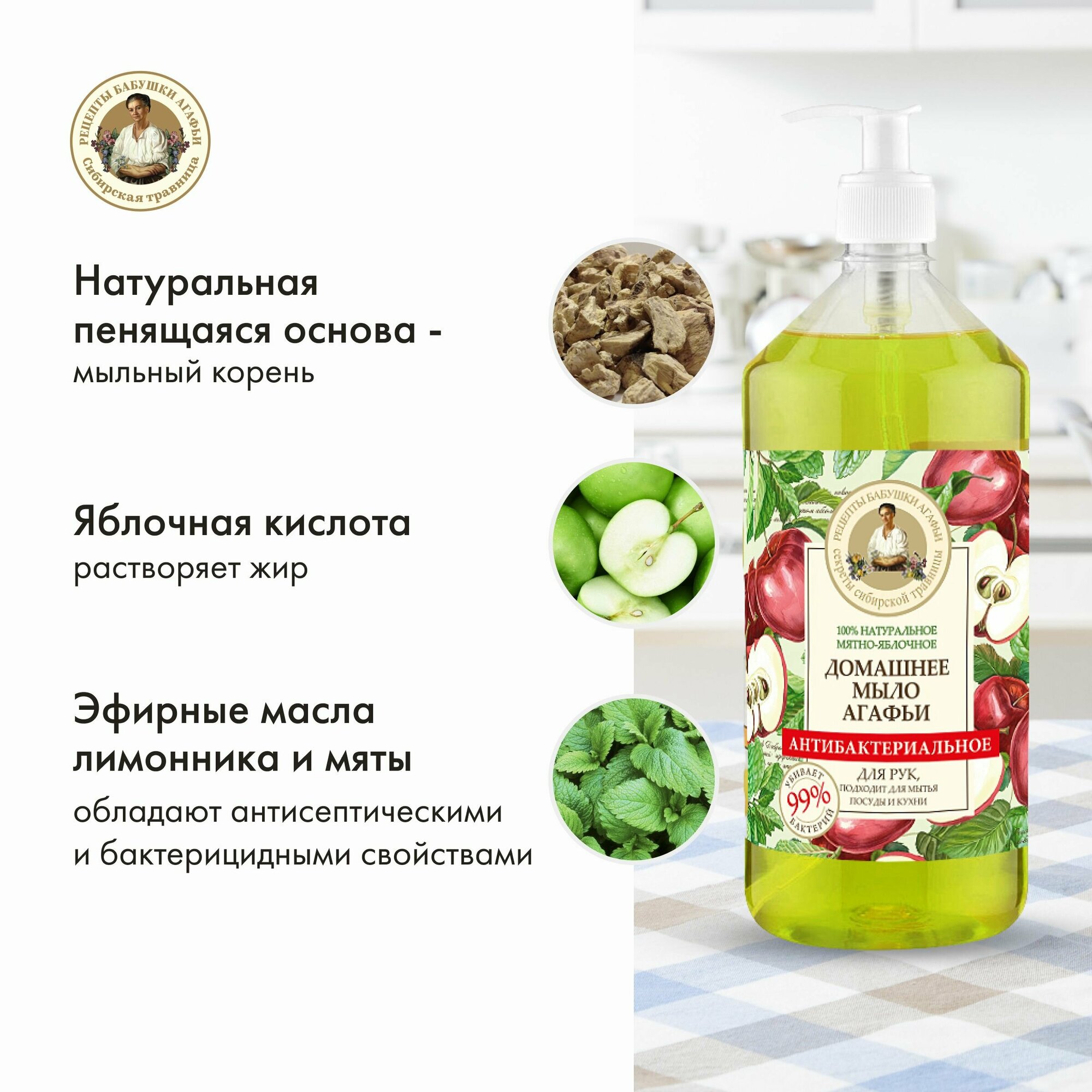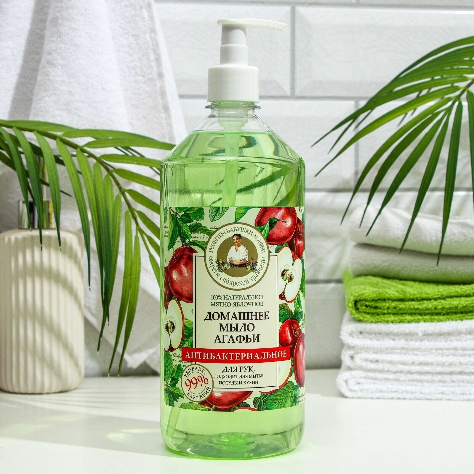 Мыло жидкое Домашнее мыло Агафьи мятно-яблочное 1000мл Рецепты бабушки Агафьи