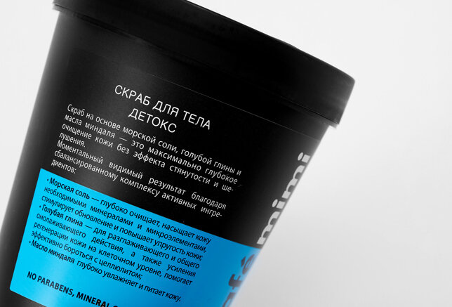 Скраб на основе морской соли, голубой глины и масла миндаля. Глубоко очищает и отшелушивает кожу, не пересушивая и не стягивая её.