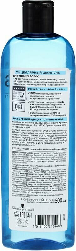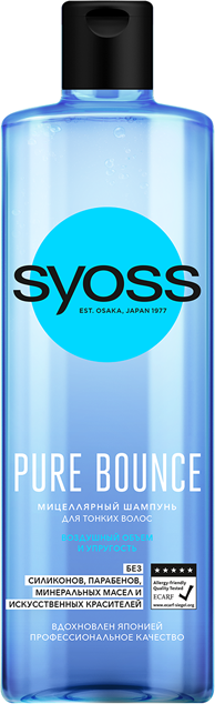СЬЁСС шампунь Pure Bounce Мицеллярный Воздушный объем и упругость для тонких волос 500 мл Syoss Pure. Bounce