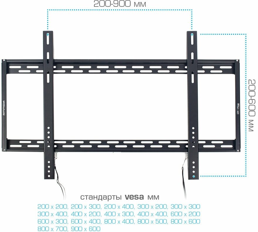 | Дополнительно | Самый большой кронштейн в линейке ARM MEDIA. Стандарт крепления VESA 900x600. Мощная стальная конструкция, способная выдержать любой ТВ весом до 80 кг. Широкое настенное основание с увеличенными размерами, для равномерно распределение нагрузки на кронштейн. Надежный механизм фиксации ТВ на кронштейне. Лёгкий монтаж/демонтаж. Универсальная система крепления:по горизонтали от 200 мм до 900 мм, по вертикали от 200 мм до 600 мм. |